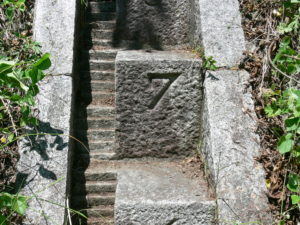 天竜川の堤防に、目盛が刻まれた石の階段が。
